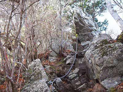 鯨山(くじらやま) 10巨岩のトラバースにも鎖が設置されています。2025年12月7日 |