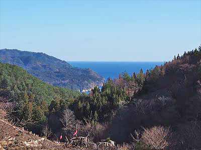 鯨山(くじらやま) 131時間50分で山頂に到着し、目の前に広がる青い太平洋に思わず息を飲みました。前回登った時(2年前)まであった山座同定(山頂からどんな山が見えるか?)の案内板が無くなっていたのは残念でした。2025年12月7日 |