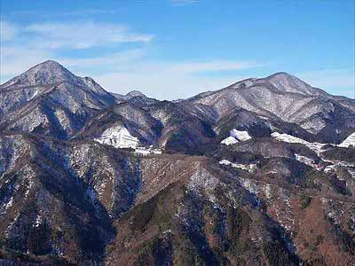 城内山 10山頂より南昌山(左)、赤林山(右)を望みます。ちなみに手前のブッシュはAIで除去してあります。2026年1月10日 |