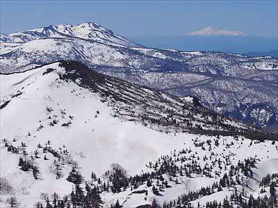 八幡平 源太ヶ岳 19秋田駒ケ岳とその右に小さく鳥海山が見えます。左奥に和賀山塊が見えます。2026年4月25日撮影 |