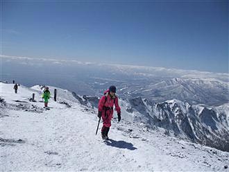 岩手山 28山頂にて。なんと山頂にピッケルを 忘れた方がいて、お渡しできるかどうか…。 ぜひ渡してあげたい、果たして追いつくか?2010年4月4日撮影 |